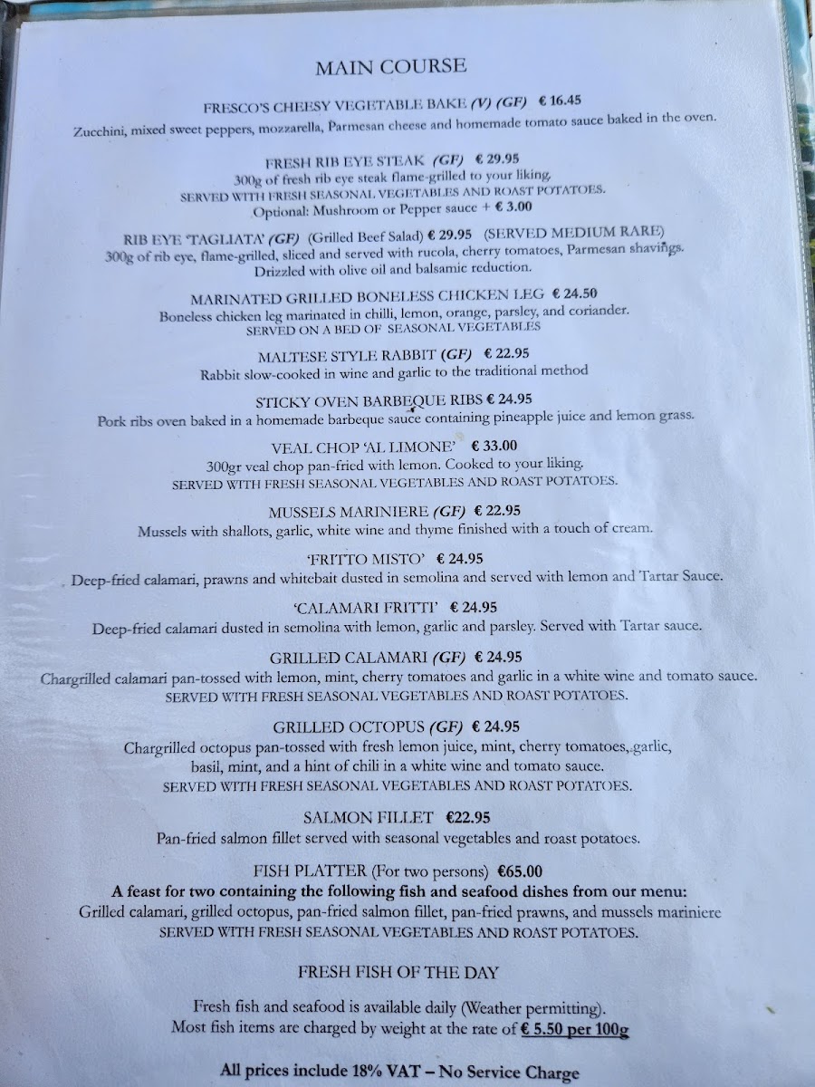 Welcome to Fresco's, a culinary gem perched on Tower Road in Sliema, Malta. This delightful restaurant invites you to explore a menu that celebrates regional flavors with a contemporary twist. Each dish is crafted with passion, offering generous portions that ensure satisfaction.